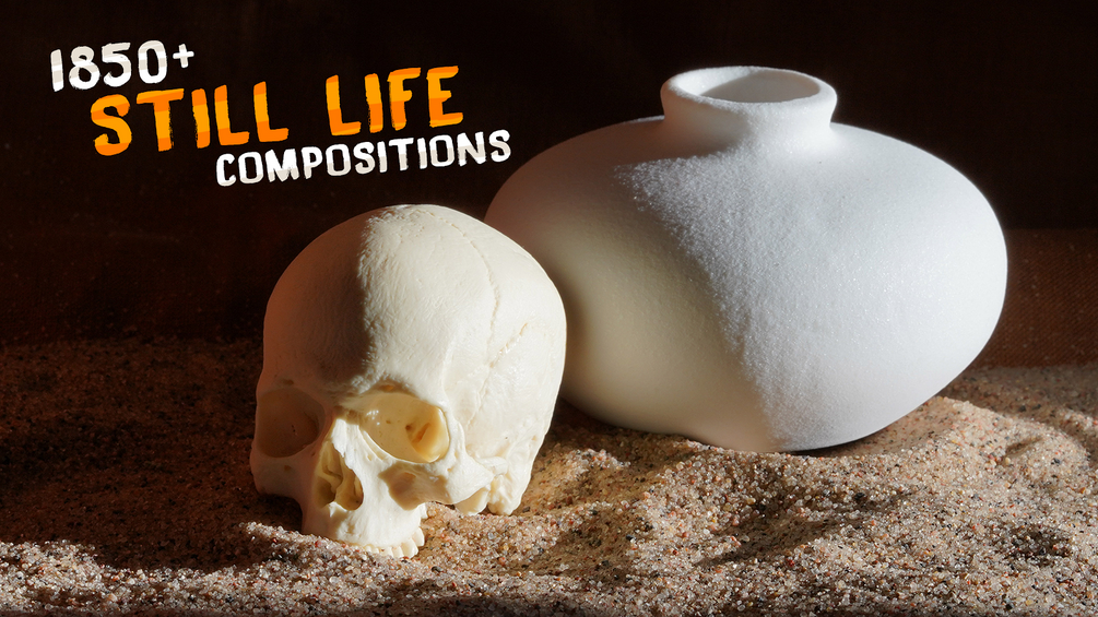 This reference pack includes dozens of skulls and bones in a wide variety of compositions, including still life arrangements. I designed this pack with a focus on clear, natural, lighting — ideal for drawing and painting.